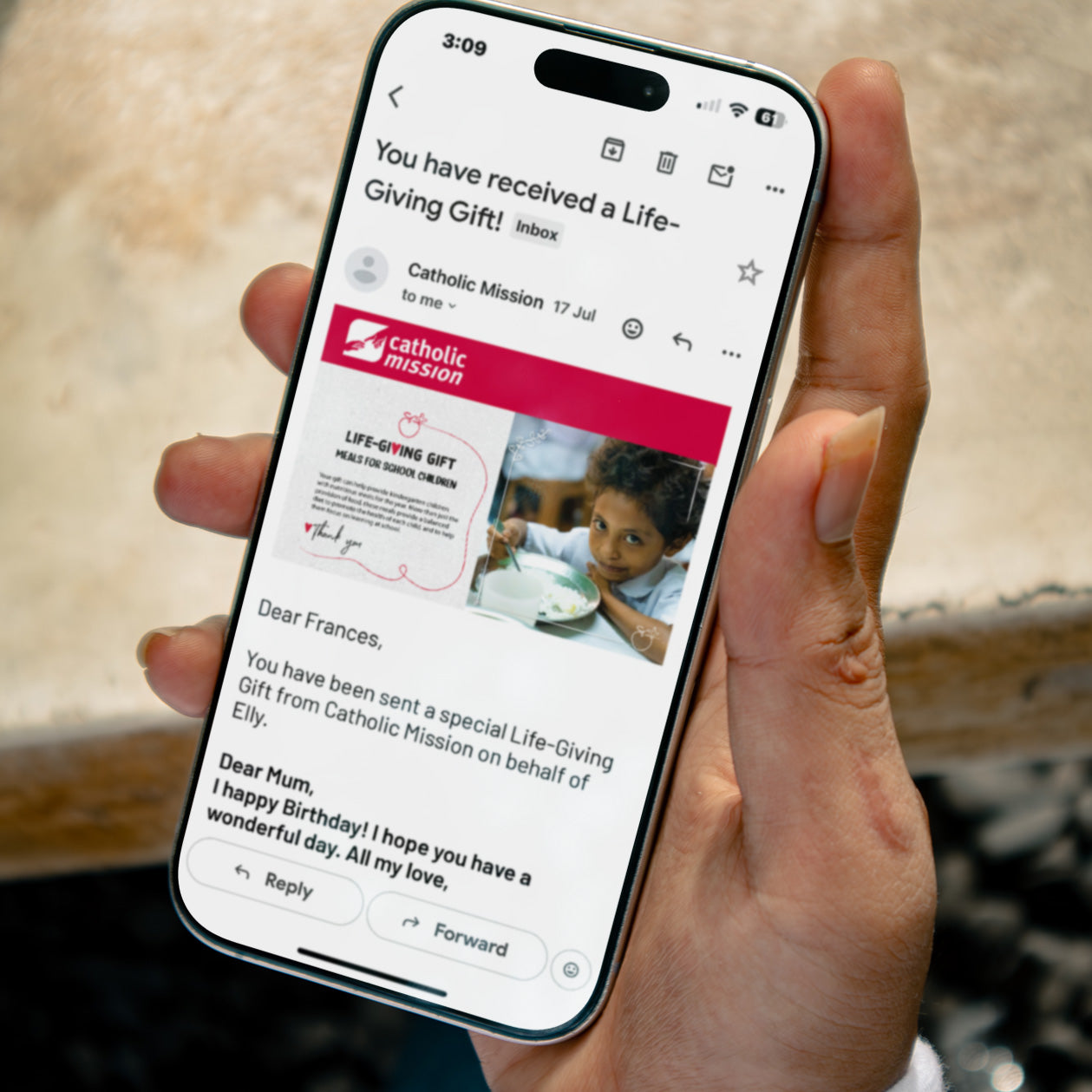 By choosing a Life-Giving Gift, you are supporting the local and international work of Catholic Mission on behalf of your gift recipient. Thank you for supporting children, families and communities with a Life-Giving Gift.